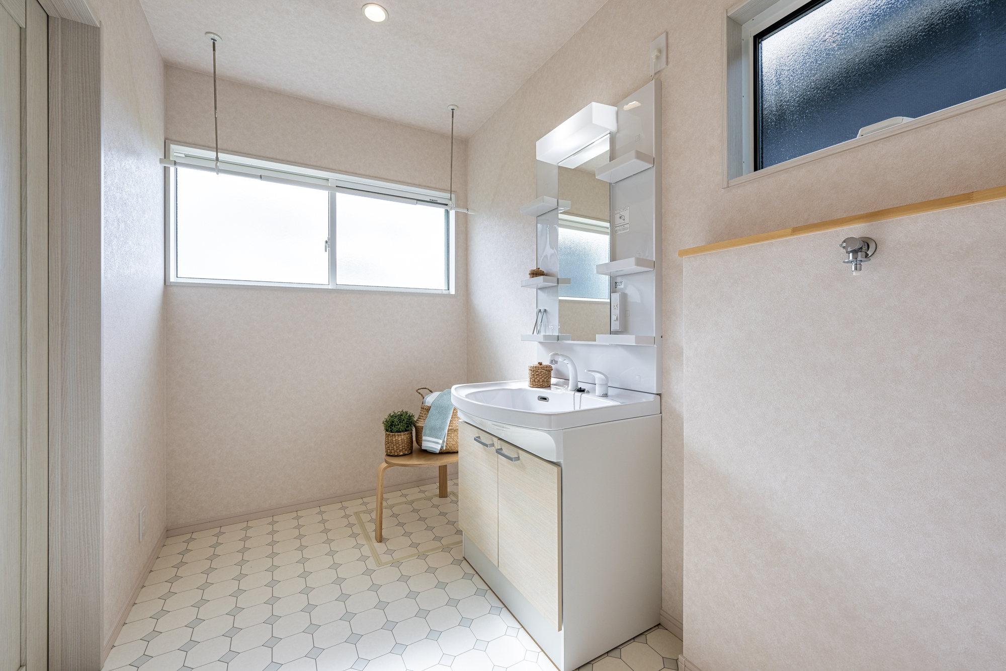 白を基調にミントグリーンやペールブルーがアクセントのかわいい家。